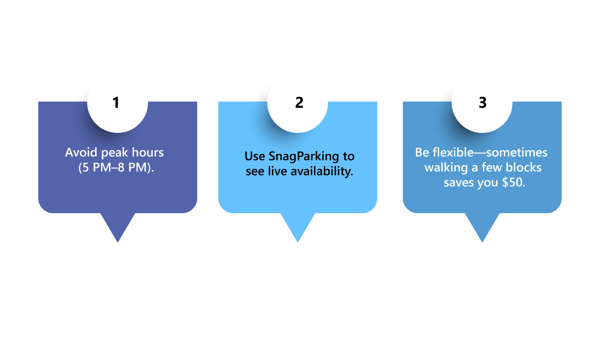✔ Be flexible—sometimes walking a few blocks saves you $50.